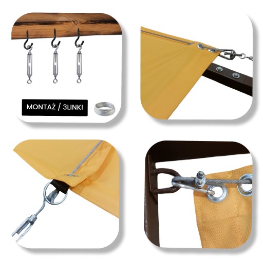 Gdy sam chcesz skąpletować akcesoria zalecamy montaż linki nierdzewnej bez oplotu PCV. Powłoka PCV hamuje rozsuwanie I zasuwanie żagla .