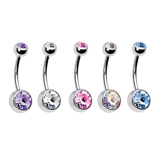 15 . Profesjonalny Zestaw Do Przekłuwania Podwójny Pierścień Pępka Ze Nierdzewnej CZ