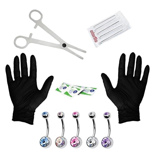 Profesjonalny zestaw 15 sztuk zawiera wszystko, czego do przekłuwania pępka