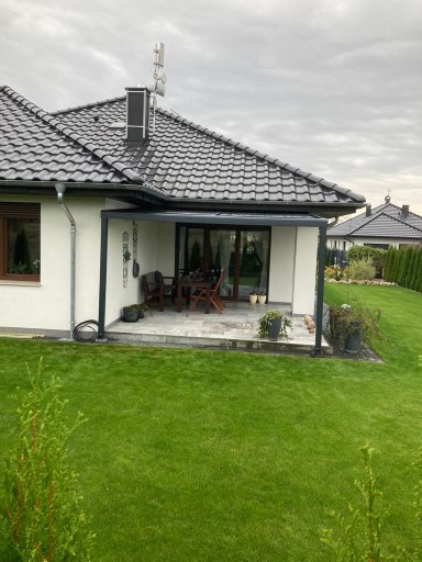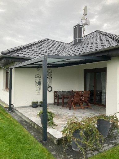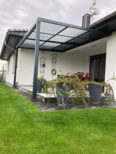 - Zbudowany z ramy aluminiowej + dach PC; chroni przed słońcem i deszczem