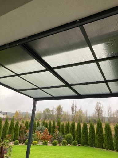 - Dwuścienne arkusze polikarbonowe o grubości 6 mm z ochroną przed promieniowaniem UV