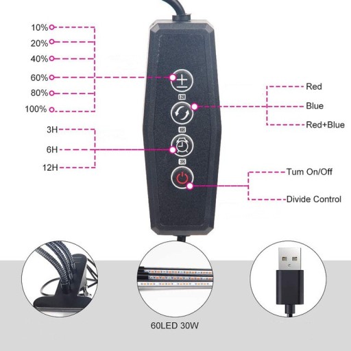 czerwone światło niebieskie światło czerwone i niebieskie światło, pełna czerwień jest dobra do ukorzeniania i kwitnienia, pełny niebieski jest dobry do barwienia, sprawia, że rośliny są piękniejsze, zapobiegając chaotycznemu wzrostowi, czerwony niebieski mieszany kolor , normalne światło wypełnienia warzywami. (Stosunek koloru niebieskiego do czerwonego wynosi 1: 2.)