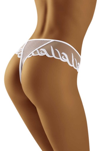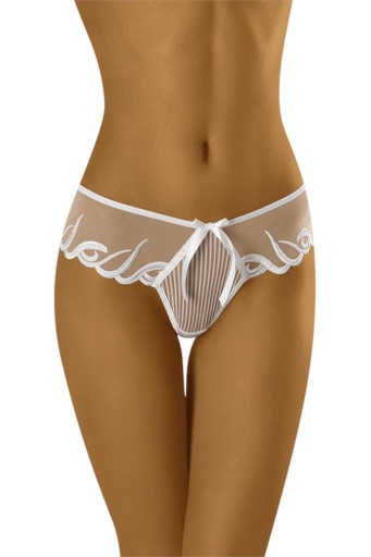 Seksowne, delikatne stringo-szorty w całości wykonane z haftowanego tiulu.
