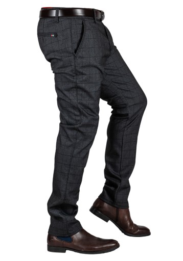 Eleganckie czarne CHINOSY w kratę JANIS