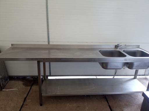 Stół z 2 zlewami, półką i miejscem pod zmywarkę/lodówkę