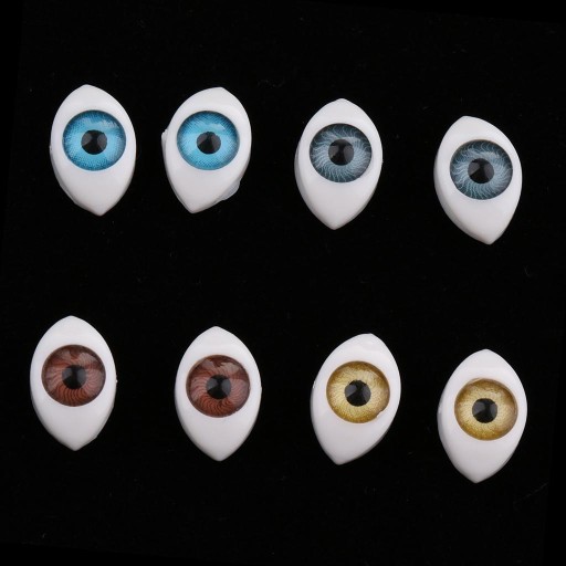 Cztery pary inspiracji oczek na lalki lub Dostępne w czterech kolorach: szarym, brązowym, niebieskim i zielonym każdy, stanowią parę Te plastikowe oczy są doskonale wykonane i bardzo realistyczne Oczy lalki są owalne, później i wklęsłe z powrotem