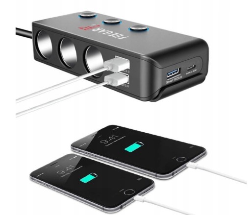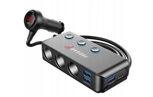 CIGA marki Feegar to świetne akcesorium do Twojego samochodu. Jest to mocny i wielofunkcyjny rozdzielacz gniazda samochodowego z wyłącznikiem głównym oraz 3 niezależnymi wyłącznikami, który idealnie sprawdzi się w Twoim pojeździe. Nie musisz wyciągać innych urządzeń z zapalniczek jeśli nie chcesz z nich korzystać po prostu wciśnij przycisk, który odetnie zasilanie w odpowiednim porcie. Jest to Polska marka w branży elektroniki użytkowej.