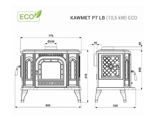 ПЕЧЬ, ОТДЕЛЬНО СТОЯЩИЙ ДЕРЕВЯННЫЙ КАМИН KAWMET P7 LB (10,5 кВт) ECO
