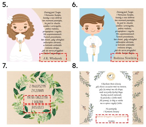 Po dokonaniu zakupu pamiętaj o przesłaniu informacji z tekstem personalizacji.* Czerwoną ramką zaznaczono miejsce podlegające zmianom.