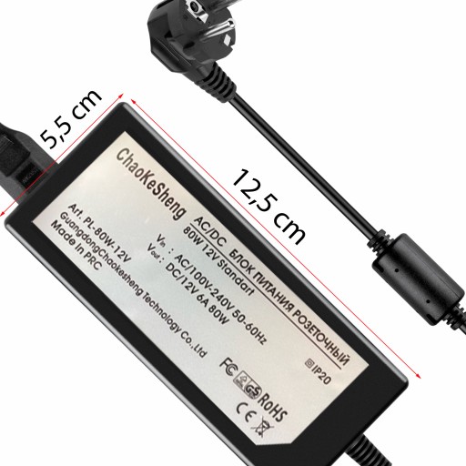 - Napięcie wyjściowe: 12V DC 6A 120W