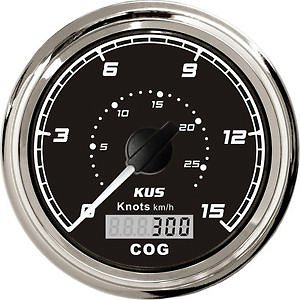 Prędkościomierz serii SeaQ z GPS, specyfikacja: średnica otworu montażowego 85 mm, maksymalna prędkość 30 km/h, podświetlenie w kolorze czerwonym lub żółtym (do wyboru). Duża wytrzymałość i estetyczne wykonanie. Antena GPS w komplecie.