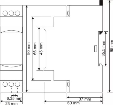 - Montaż: Pionowy montaż w panelu lub na szynie DIN