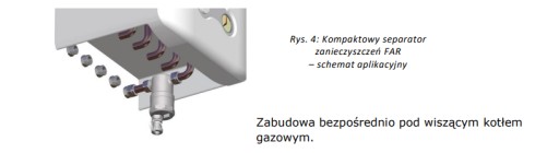 Separator zanieczyszczeń montowany jest w instalacji centralnego ogrzewania. Służy do usuwania zanieczyszczeń stałych, które mogą powodować uszkodzenie elementów instalacji. Separatory powietrza i zanieczyszczeń powinny być stosowane we wszystkich typach instalacji grzewczych. Separatory zanieczyszczeń odpowiadają za filtrację medium z wszelkich zanieczyszczeń stałych i są skuteczniejsze niż filtry siatkowe. Wyposażone są w jedną lub dwie wkładki magnetyczne do usuwania cząsteczek metalowych (np. rdzy). Separatory powietrza usuwają powietrze rozpuszczone w medium. Zastosowanie obydwu separatorów jednocześnie zwiększa żywotność instalacji i zabezpiecza urządzenia przed zanieczyszczeniem. Magnetyczne separatory FAR montuje się na powrocie, natomiast separatory powietrza na zasilaniu C.O.