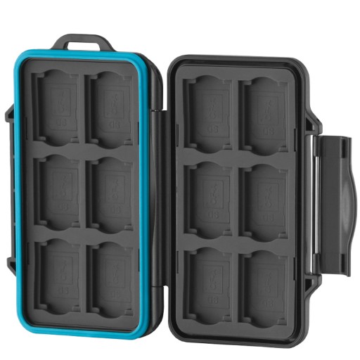 Etui JJC MCR-SC24 przeznaczone do przechowywania 12 sztuk kart pamięci typu SD oraz 12 sztuk kart pamięci CFexpress typu A. Wytrzymała i wodoodporna konstrukcja wykonana jest z tworzywa ABS.