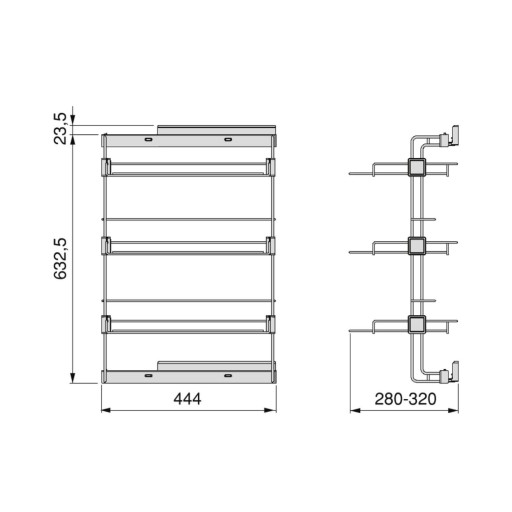 Kosz wyposażony jest w trzy tace na buty, które mają możliwość regulacji kąta nachylenia. Dzięki tej funkcji w łatwy sposób można dopasować Cargo do swojej szafy, a także dostosować półki do rodzaju przechowywanego na nich obuwia.
