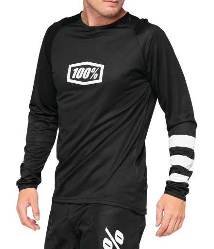Koszulka juniorska 100% R-CORE Youth Jersey długi rękaw black white roz. L (WYPRZEDAŻ -50%)
