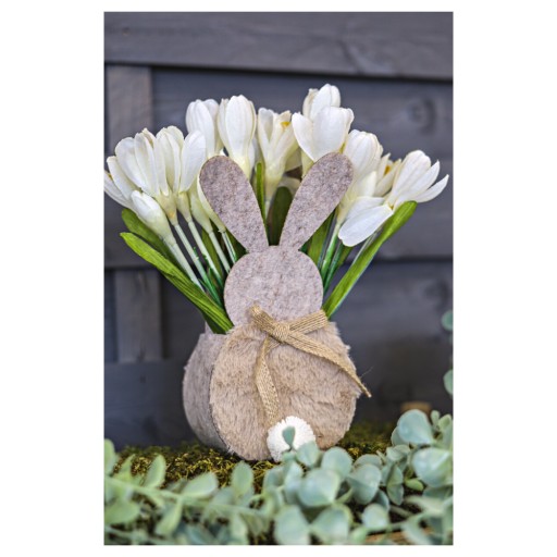 Koszyk wykonany z filcu w kształcie zajączka sprawdzi się we wszystkich wielkanocnych kompozycjach. Świetnie się nada jako koszyczek na pisanki - spodoba się i młodszym i starszym. Produkt dostępny w dwóch wersjach - z szarym i brązowym futerkiem. Przy składaniu zamówienia proszę zaznaczyć wybrany wzór w komentarzu, w przeciwnym razie wysyłka losowa. Koszyczek ma 22 cm wysokości, 10 cm szerokości i 7 cm głębokości.