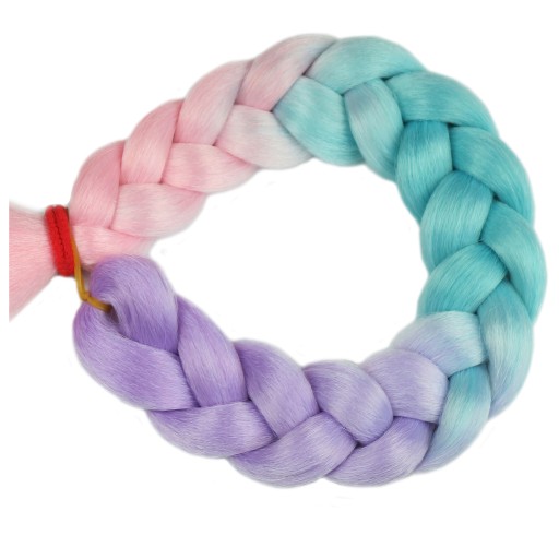 Włosy syntetyczne w przepięknym wariancie kolorystycznym -fioletowo-turkusowo-różowym. Wykonane z gładkiego i przyjemnego w dotyku henlonu. Model świecący w ciemności.