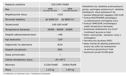 Posiada funkcje MULTIPOWER pozwalającą na ustawienie wymaganej mocy 22W-30W-35W-40W