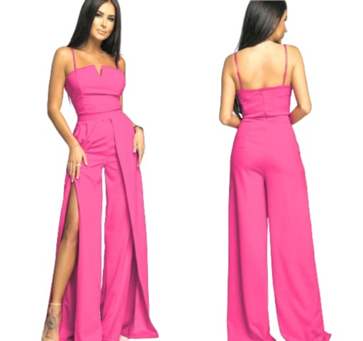 Elegancki kombinezon na cieniutkich, regulowanych ramiączkach. Dopasowany fason wyeksponuje kobiece kształty. Wszyte są usztywniane miseczki modelujące biust. Wzdłuż pleców kryty zamek. Kombinezon posiada regulowane ramiączka. Materiał elastyczny, lejący, nie prześwituje. Modelka ma 170cm wzrostu i nosi rozmiar S.