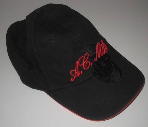 Czapka z daszkiem Adidas w barwach AC Milan. Produkt oryginalny. Rozmiar: One Size. Używana. Stan jak na zdjęciach. Z Włoch. Cena za 1 szt.
