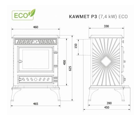 PIEC ŻELIWNY KOMINEK KOZA NA DREWNO KAWMET P3 (7,4 kW) EKOPROJEKT 2 LATA GW