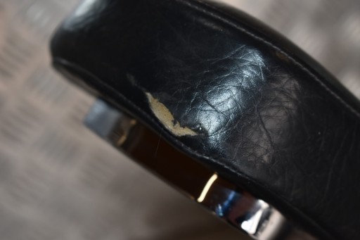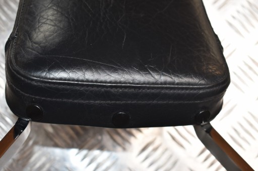Oparcie używane w stanie dobrym, posiada nieduże ślady korozji oraz niewielkie uszkodzenia obszycia poduszki, uszkodzenia widoczne na zdjęciach.