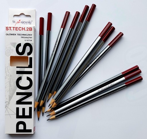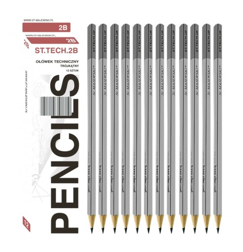 Ołówki techniczne trójkątne 2B, 12 sztuk, ST.TECH