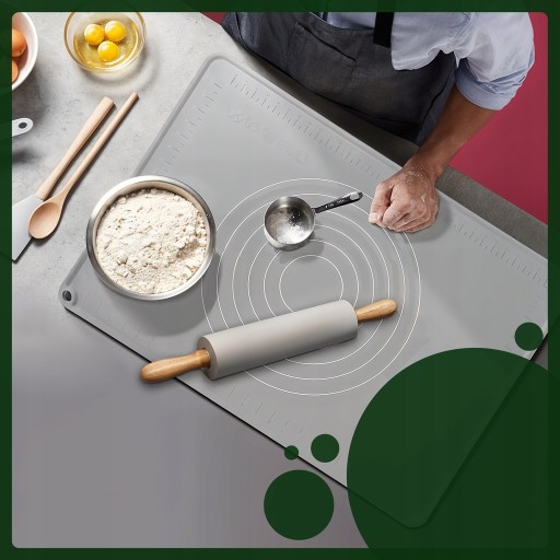 ✓ Wałek wykonany z gładkiego silikonu, który nie przykleja się do wyrabianej masy. W porównaniu do wałka drewnianego zużywamy mniej mąki.