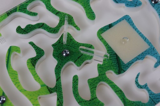 2) Kolorowe wykończenie części gniazdowej jest unikatowe. Nie tylko poprzez estetyczne wykończenie nawiazujące do motywów przyrody, ale również poprzez to, że wzór na pleksie jest nadrukowany, a nie naklejony (jak u innych producentów) Oznacza to, że formikarium jest bardziej długowieczne.