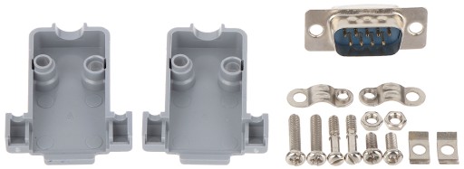 Złącze D-Sub DB9 (DE-9) w trwałej, skręcanej, plastikowej obudowie, jest przeznaczone do montażu na kablu.