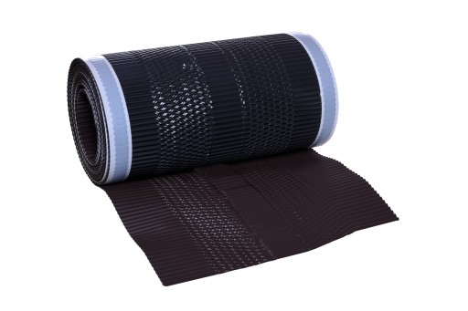 Taśma kalenicowa cała z aluminium w środkowej części w specjalny sposób perforowana, co pozwala zachować odpowiednią powierzchnię wentylacji i jednocześnie uniemożliwia wniknięcie wody przez otwory. Występuje w 4 podstawowych kolorach: antracytowy RAL7021, czarny RAL9005, brązowy RAL 8019 i ceglasty RAL 8004. Dodatkowo na zapytanie może być w kolorze wiśniowym lub bordowym. Jest elementem zabezpieczenia kalenicy przed nawiewem opadu atmosferycznego, ale spełnia też ważna funkcję jako element wentylacji przestrzeni pod pokryciem. Posiada szereg dziurek wyprofilowanych tak by nie przepuszczały płynącej wody , ale były wystarczająco duże by spełnić normę wentylacji pokrycia.