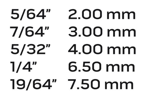 - Wykrętak w zestawie - 2, 3, 4, 6.5, 7.5 mm