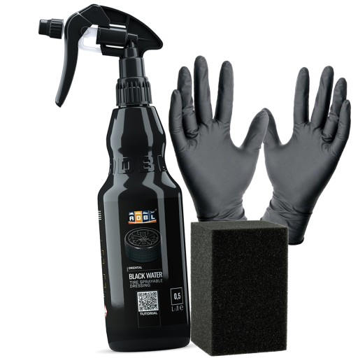ADBL Black Water – to szybki i prosty w użyciu dressing do opon. Przywraca naturalny wygląd wyblakłym elementom gumowym. Zabezpiecza powierzchnię przed szkodliwym działaniem promieni UV, zanieczyszczeniami drogowymi oraz solą. Zapobiega utracie koloru oraz przeciwdziała nadmiernej degradacji materiału. Posiada świetne właściwości hydrofobowe i spowalnia proces osadzania się brudu.
