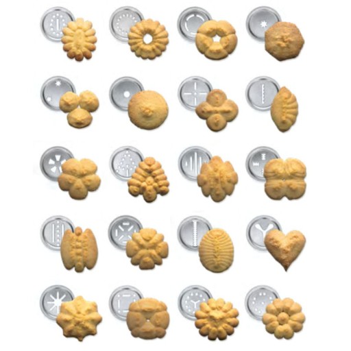 DOMOWA MASZYNA DO CIASTEK Maszynka do robienia domowych ciastek w prosty, szybki i przyjemny sposób. Biscuits pozwala napełnić całą blachę piekarnika herbatnikami w ciągu kilku minut, w 20 różnych kształtach i 2 rozmiarach, które możesz udekorować według własnego uznania. Dzięki wzornictwu w stylu retro, modnym kolorom i najnowocześniejszym materiałom Biscuits jest użytecznym i doskonałym dodatkiem uzupełniającym wystrój Twojej kuchni.