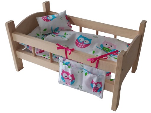 ŁÓŻECZKO DREWNIANE Z KOMPLETEM POŚCIELI(5 elementów )