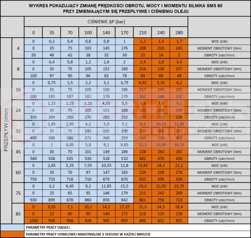 Maksymalne parametry w pracy ciągłej: