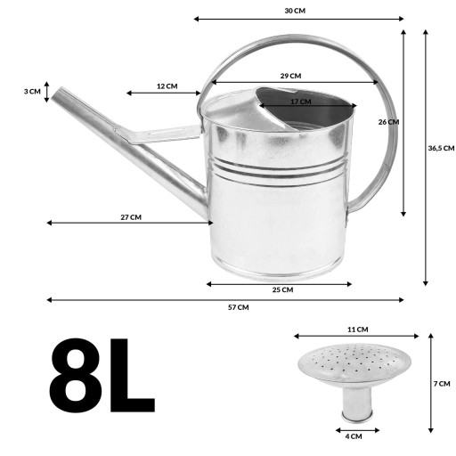 ✅ Trwałość: Powłoka ocynkowa, która pokrywa konewkę, chroni ją przed korozją i uszkodzeniami wynikającymi z kontaktu z wodą i innymi czynnikami atmosferycznymi. Dzięki temu konewka jest wyjątkowo trwała i może służyć przez wiele lat.