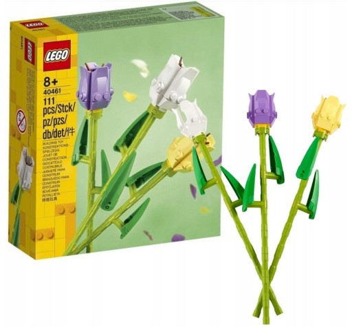 Uczcij nadejście wiosny lub inną specjalną okazję — pomoże Ci w tym zestaw LEGO® 40461 Tulipany. Kwiaty będą doskonałym prezentem na Dzień Matki lub upominkiem bez okazji. Dzięki nim pokażesz drugiej osobie, ile dla Ciebie znaczy. Ten łatwy do zbudowania zestaw zawiera trzy kwiaty — biały, fioletowy i żółty — z jasnozielonymi liśćmi symbolizującymi nowe życie, które rodzi się wiosną. Dzięki łodygom o regulowanej długości tulipany pasują do większości wazonów. Zestaw można również połączyć z zestawami LEGO 40460 Róże i LEGO 10280 Bukiet kwiatów.