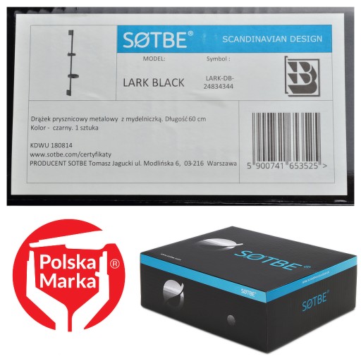 Regulowany drążek prysznicowy SOTBE LARK BLACK Drążek prysznicowy z mydelniczką CZARNY