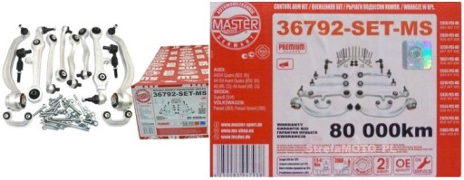 Nowy, kompletny zestaw 8 wahaczy HD (drążków reakcyjnych) + 2 końcówki drążka kierowniczego + 2 łączniki stabilizatora + śruby HD - kompletny zestaw wielowahaczowego zawieszenia na obydwie strony. Zestaw charakteryzuje się doskonałym stosunkiem jakości do ceny. Komplet jest jakościowo bardzo dobrze wykonany i chwalony przez wielu mechaników (kupują zestawy już od kilku lat) nie ulega szybkim uszkodzeniom jak inne tańsze "chińskie" zamienniki.. Wahacze firmy MASTER-SPORT wyprodukowane są z wysokiej jakości materiałów przy zachowaniu najwyższych norm procesów produkcji oraz norm jakościowych. Spełniają wymogi dyrektywy Unii Europejskiej GVO co oznacza że mogą być zamiennikiem części oryginalnych. Wzmocniona konstrukcja tulei oraz sworzni zastosowanych w wahaczach przekłada się na zwiększenie żywotności, bezpieczeństwa i komfortu jazdy.