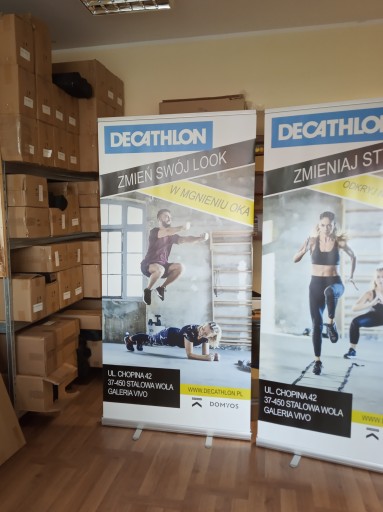 - Grafika drukowana na materiale dedykowanym do rollupów