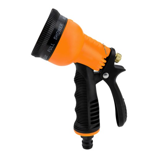Wielofunkcyjny pistolet ogrodowy dzięki wbudowanemu mechanizmowi regulacji, pozwala na zmianę rodzaju strumienia spośród 8 dostępnych funkcji oraz daje możliwość regulacji siły wody. Zmiany programów następują po przekręcaniu obrotowej głowicy. Pistolet wyposażony został wygodną, antypoślizgową rączkę oraz w blokadę lania wody bez konieczności ciągłego naciskania rączki – wystarczy tylko przesunąć metalowy haczyk w pistolecie. Pistolet posiada 8 funkcji: