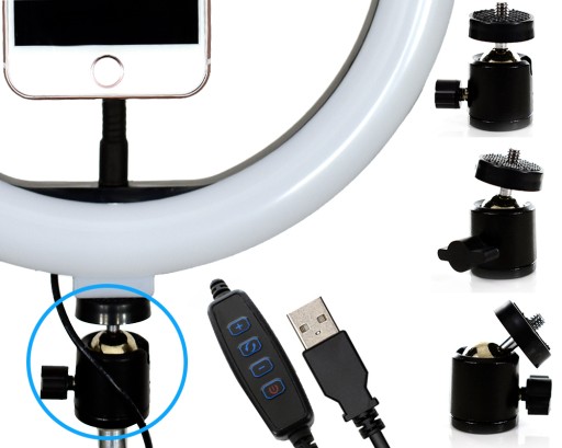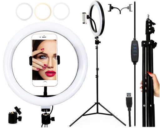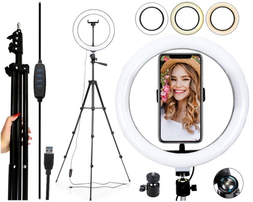 💡LAMPA PIERŚCIENIOWA-BEZCIENIOWA RING LIGHT 10 cali Z UCHWYTEM NA TELEFON I STATYWEM STUDYJNYM.