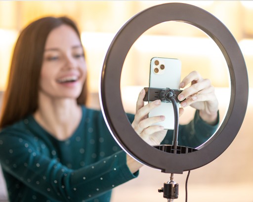 ✅ Dzięki załączonemu uchwytowi na telefon idealnie nadaje się do filmików, live streamingu IG/YT, sprzedaży online, vlogów,videoblogów itd.