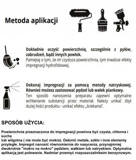 - tworzy ochronę hydrofobowa, odporną na zmywanie i trudne warunki atmosferyczne