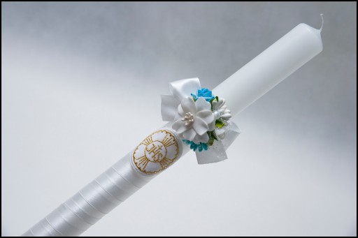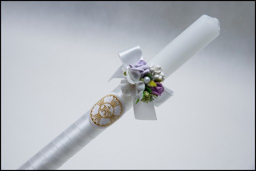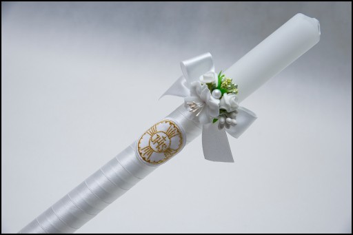 Wyjątkowa ręcznie zdobiona świeca do Pierwszej Komunii Świętej.