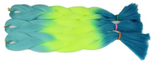 Włosy syntetyczne w przepięknym wariancie kolorystycznym - odcienie niebieskiego + żółty. Wykonane z gładkiego i przyjemnego w dotyku henlonu.