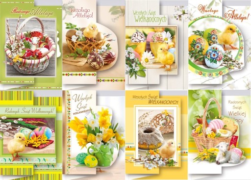 KARNET LAURKA KARTKA WIELKANOC B6 mix 8 SZTUK pokazanych na zdjęciu + 8 SZTUK BIAŁYCH KOPERT.