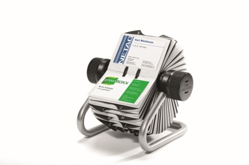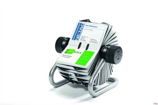 - Szybkie odszukiwanie wizytówek zapewnia mechanizm obrotowy.